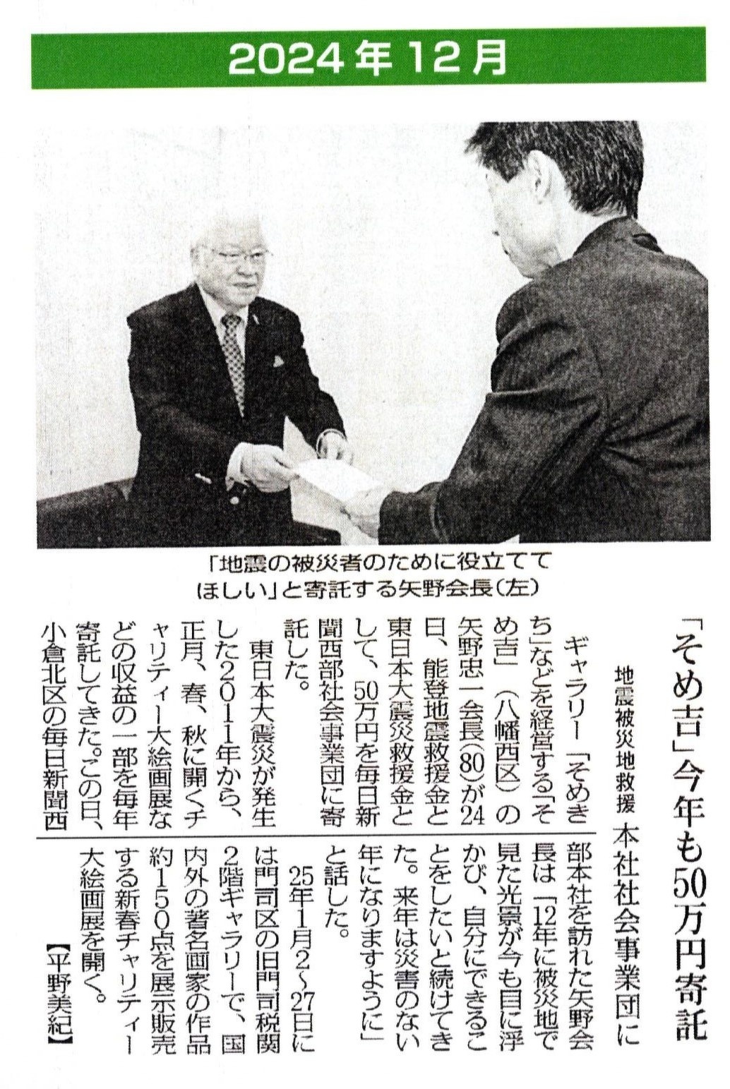 「本年最後のチャリティー大絵画展」の入札を締め切りました。(令和6年12月9日15時00分)